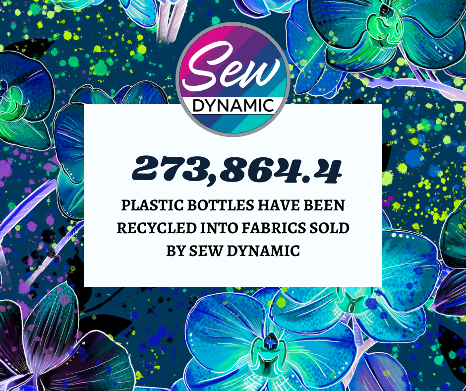 We've been expanding the last few months and bringing in some natural fibers, but offering certified recycled fabrics is still one of our top priorities. To date Sew Dynamic Fabrics have been made from over 273,000 plastic bottles.