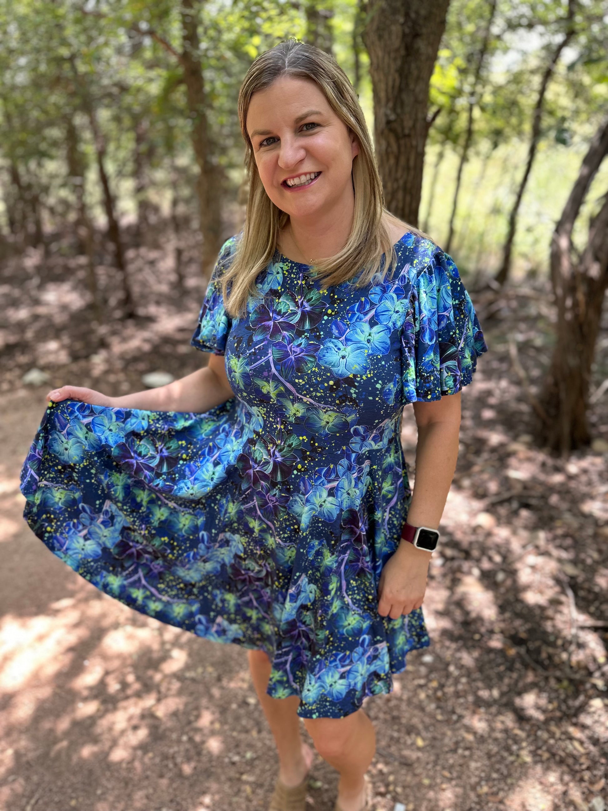 • Tencel Spandex is Sew Dynamic's first printable natural fiber. It's an interlock jersey, and is more durable than a single jersey. The fabric has a lovely drape. It is softer than a typical cotton spandex, and more stable (less clingy/drapey) than a typical bamboo spandex. It's soft, the colors are saturated and the fabric has good stretch.
